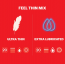 Durex Feel Thin Mix sadrži: 20 komada Durex Feel Thin Classic i 20 komada Durex Feel Thin Extra Lubricated kondoma. Izrađeni su od tankog materijala i dodatno podmazani za još veći osjećaj osjetljivosti.